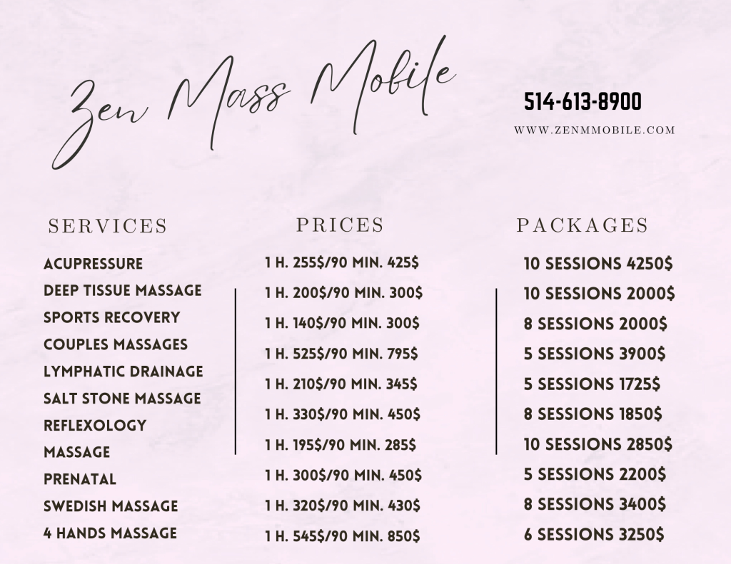 With Zen Mass Mobile, you can relax and unwind in the comfort of your own home, hotel, or office while enjoying personalized treatments delivered by skilled therapists. We provide a peaceful, spa-like experience with high-quality oils, calming techniques, and attention to every detail—so you can feel refreshed, relaxed, and completely cared for.